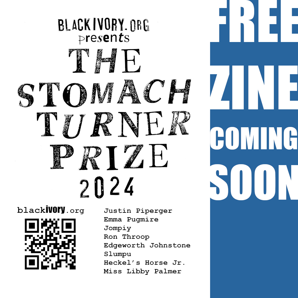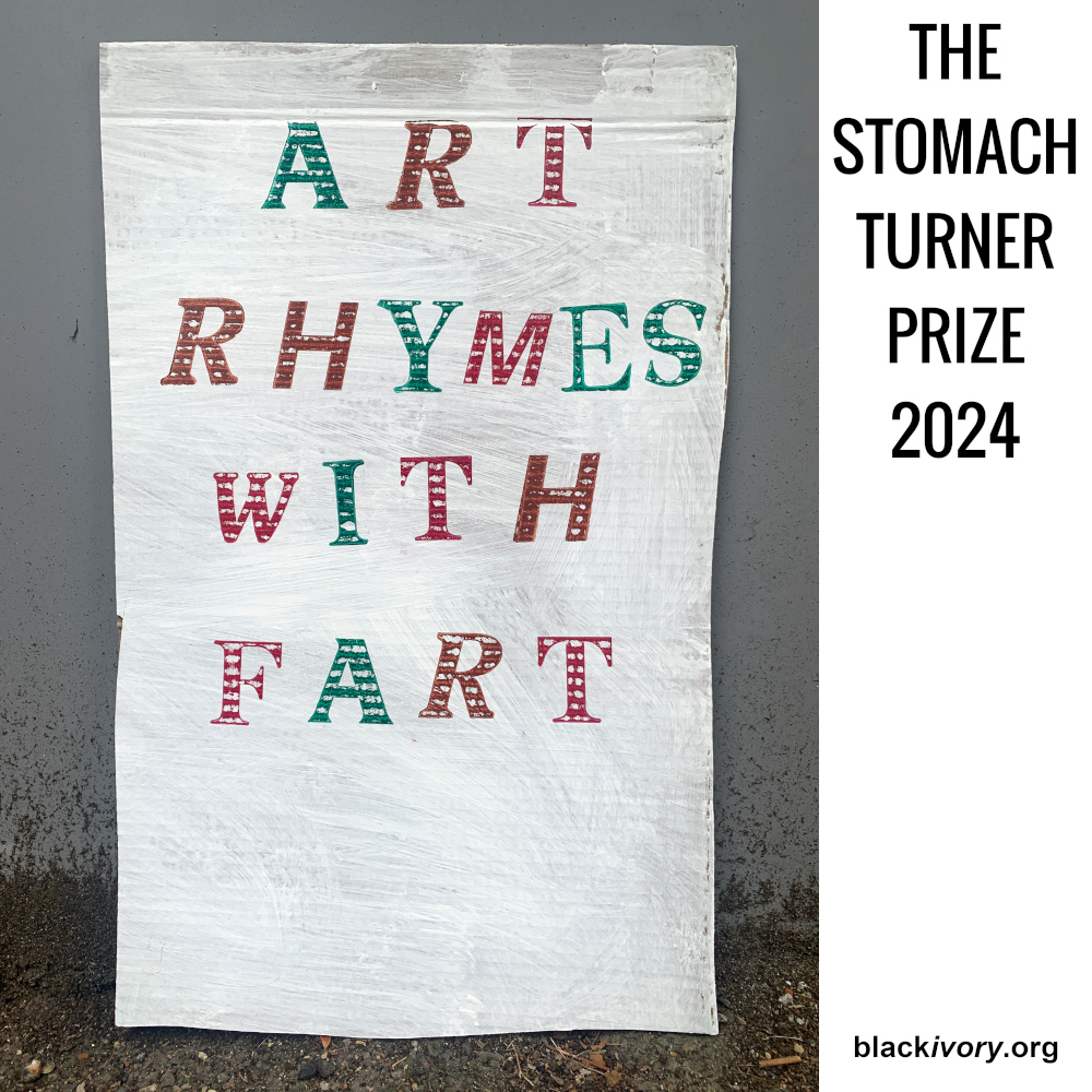 Any artist recognised as worthy by the Black Ivory Printmaking & Audio Club may be shortlisted for The Stomach Turner Prize as long as what they’re being selected for has been publicly exhibited or performed in the last year, outside the main establishment channels.