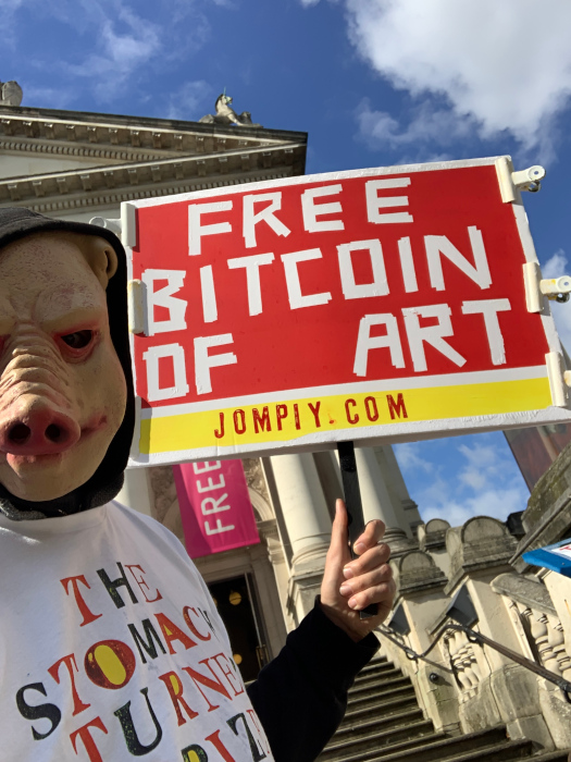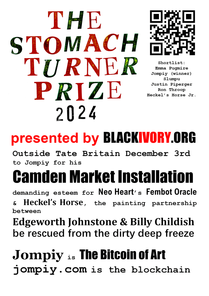 WINNER OF THE STOMACH TURNER PRIZE 2024 IS JOMPIY. For his Camden Market Free Bitcoin of Art Installation: