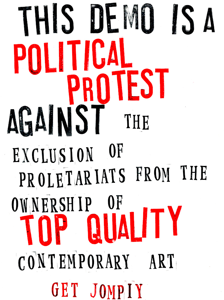 A political demonstration & protest against the exclusion of proletariats from the ownership of top quality contemporary art.